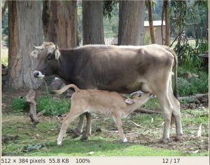 We obtain the following result. Notice how the trees and the silhouette of the cow are approximately well defined (except in areas in which the intensity are very similar, i.e. around the cow’s head). Also, note that the roof of the house behind the trees (right side) is notoriously marked. This is due to the fact that the contrast is higher in that region.